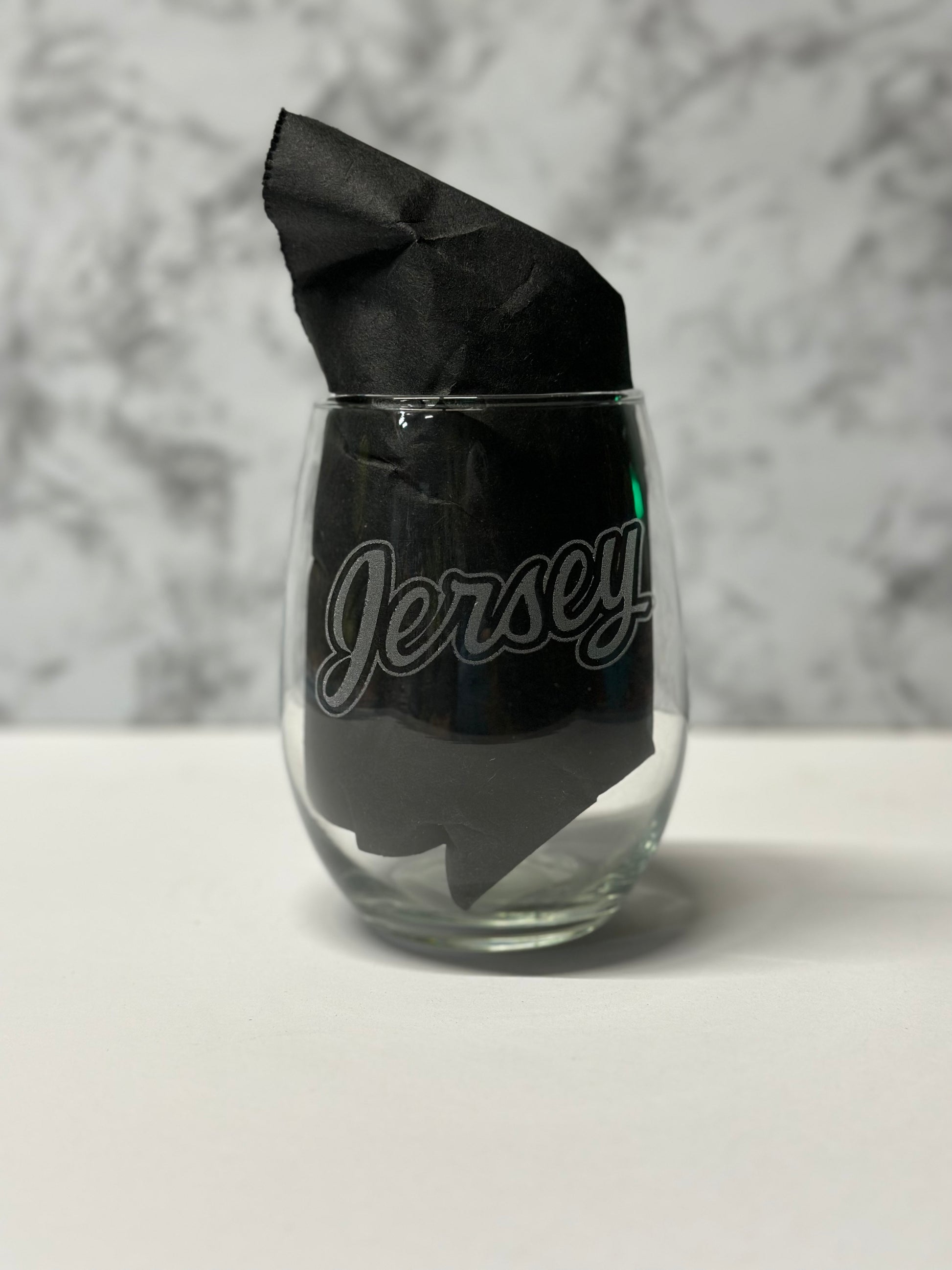 Show your Jersey Pride with a custom glass! Either wine, beer, or any other cold beverage can display proudly your love for Jersey.